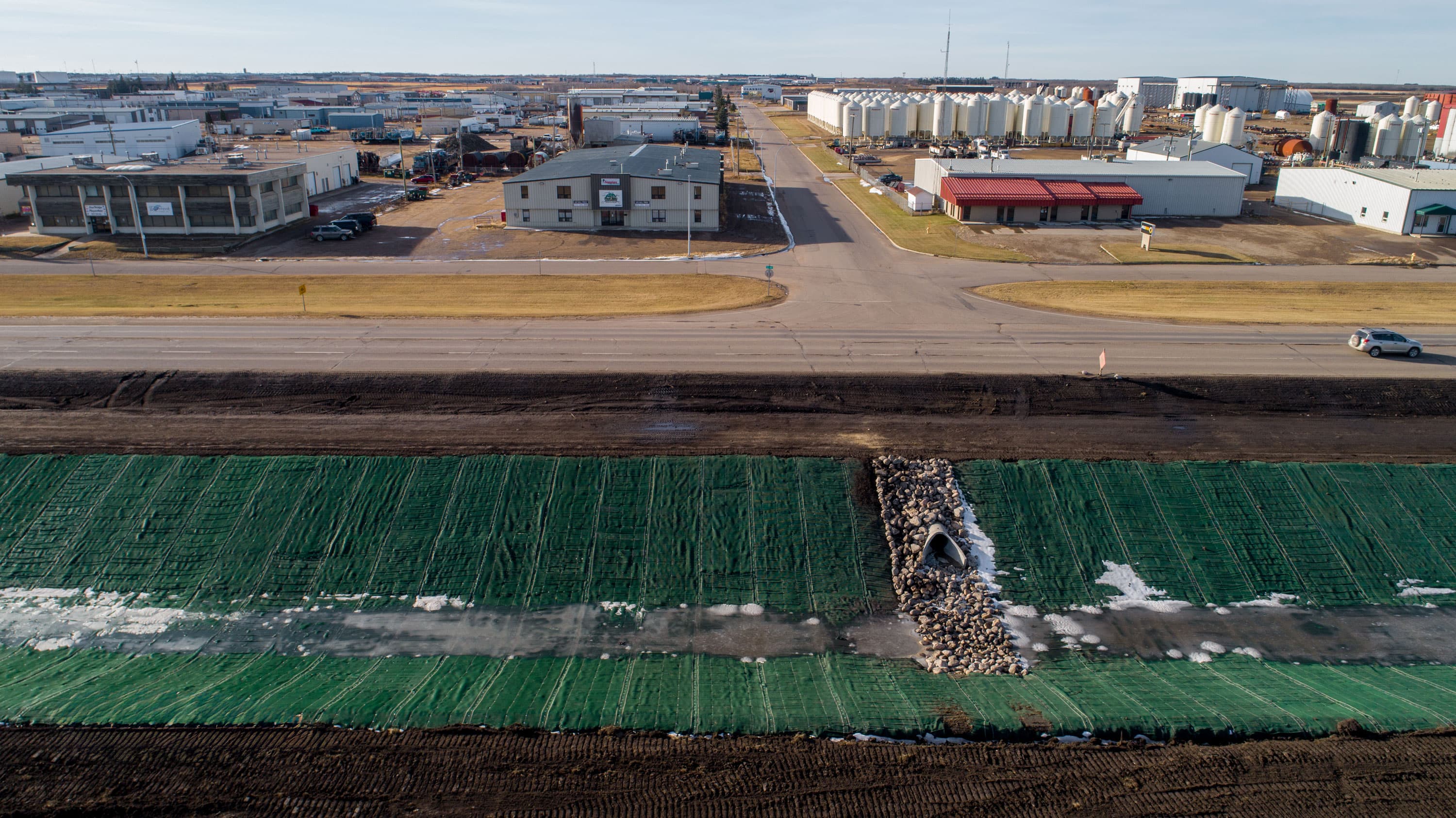 PROPEX® Armormax® stabilized the eroded Reinland Drain, reducing costs and emissions while ensuring long-term flood protection with reinforced vegetation growth.