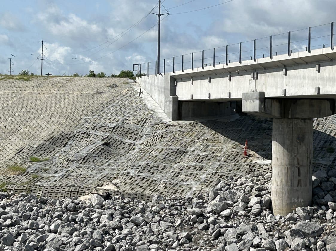 The USACE implemented a 19.3-km (12-mi) diversion canal project from the Comite River to the Mississippi River. This extensive project included six segments, control structures, two railroad bridges, and four highway bridges, employing 30,193 m3 (33,000 yd3) of PROPEX®Armormax® with B1 Anchors along the canal's slopes.